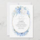 Convites para celebração de batismo de flores brancas e azuis maçosas