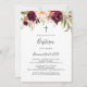 Este convite para o batismo floral, colorido e rústico, é perfeito para um batismo ou batizante moderno para bebês. A design apresenta coloração d'água rosa, roxa, vermelha e burgundy, agrupadas em buquês elegantes com folhagem verde, inspirando beleza natural.