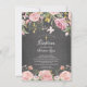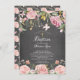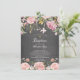 Bonita floral rosa Chalkboard com folhas de ouro convite para batismo com um retorno floral coordenado para um toque especial extra.