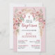 Pastel cor-de-rosa-rosa floral aquarela cristã convites para batismos religiosos cristãos.