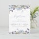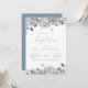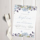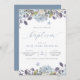 Um convite batismo adorável para o seu filho. Este design apresenta bordas superiores e inferiores com flores de aquarela e folhas azuis e verdes. "Batismo" está na letra azul do estilo caligráfico moderno. O reverso está em azul sólido.