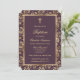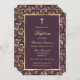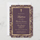 Convites Batismo Floral de EggPlant e Dourado Cross Script