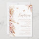 Boho Floral e Butterflies Baptism Rosa Convite Para Batismo Este batismo doce ou batizante apresenta um tom rosa, pincelado e natural arranjos florais boêmicos e três borboletas de ouro rosa.