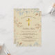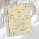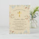 Este convite encantador e simples mostra uma folhagem de aquarela e uma cruz de ouro contra um pano de fundo suave neutro. Use as ferramentas de design para personalizar o texto, a fonte e as cores. Também disponível como download digital para versões.