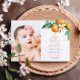 Convites Batismo Floral Laranja Elegante