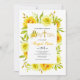 A aquarela amarela floresce batismo neutro convite floral. Este belo design apresenta um quadro floral feito de flores amarelas e folhas suculentas verdes e seu texto. A palavra "batismo" encontra-se em ouro, numa letra decorativa, com um buquê floral, enquanto o nome da rapariga está na tipografia da escrita. Em vez da letra "I" na palavra "Batismo, há uma cruz dourada.