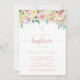 Este convite para o batismo floral de primavera de ouro rosa é perfeito para um batismo ou batizante de bebê rústico. A design apresenta uma riqueza de peões coloridos e folhagem verde, lindamente amontoada em buquês charmosos, inspirando beleza natural.