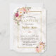 Convites Batismo Floral Rosa Cor-de-Água Dourada Charme