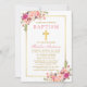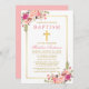 O Convite para Batismo Floral por Blush de Aquarela Elegante inclui rosas rosa e verde. Dourado quadro. Dourada Cruz.