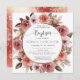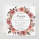 Celebre o Batismo da sua filha com este maravilhoso convite floral de ouro rosa. O mesmo convite está disponível em espanhol. Anel de ouro falso cintilante no centro, rodeado por flores impermeáveis de cor aquosa em tons de rosa poeirentos e esmagados. Uso de Script e bloqueio da tipografia moderna. Traseira da placa com rosa dourado brilhante e delicado padrão de cruz do ornamentado. Você pode fazer alterações no tamanho, estilo e posição da fonte selecionando personalizar.