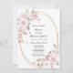O convite para o batismo elegante e feminino apresenta lindas rosas rosa decorando uma estrutura de ouro oval. Todo o texto é editável para que você possa usá-lo para qualquer tipo de cerimônia religiosa, Batismo, Cristo, Dedicação ou Confirmação.