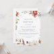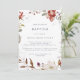 Este simples convite para o batismo floral é perfeito para um batismo de bebês rústicos. O design bicho-branco apresenta flores rosadas, rosas, burgundy e marsala rochosas e roxas rústicas.