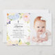 Convide familiares e amigos para o seu evento com este convite batismo feminino e caprichoso. Apresenta a ilustração aquosa das flores rosas, amarelas, azuis e roxas. Este convite floral é perfeito para primavera e batismos de verão. Personalize adicionando os detalhes e a foto do evento.