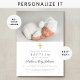 Convite para Batismo Fotográfico de Rapariga Religiosa Personalizada.