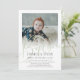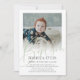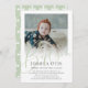 Um convite minimalista ao batismo com batismo escrito num guião verde pálido. Adicionar nome e texto em cinzas suaves. Personalize com uma foto do seu bebê. A parte traseira apresenta um padrão verde e branco com cruzes.