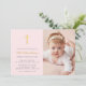 Convites Batismo fotográfico rosa cor-de-rosa simples