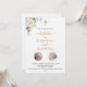 Para o batismo de 2 crianças. Um fundo branco decorado com verde e ouro de eucalipto e uma flor branca. Personalize e os nomes, fotos e detalhes da cerimônia infantis. Letras pretas e ouros coloridas.