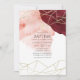 Convite batismo com uma rica tinta vermelha e pincelada de cor de água rosa e uma estrutura geométrica dourada.