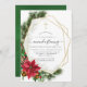 Batismo de natal, batismo de natal rusticidade, batizando ou dedicando convite com moldura geométrica dourada e tipografia de escrita manual com sinos de trenó, flores de poinsettia, sagrada, névoa e pinheiro.