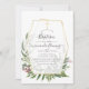 Convite de batismo de arboricultura verde com ervas selvagens, samambaias, folhas e eucalipto com estrutura geométrica de ouro personalizável para suas especificidades de evento.