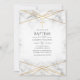 Convite batismo com uma textura de mármore com uma estrutura geométrica dourada e um mármore de folha de ouro ao contrário.