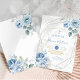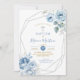 Convites Batismo Geométrico Floral de Prata Azul Dusty