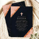 Celebrar a ocasião sagrada de um batismo com este belo convite à faísca de cobre, rosa e azul marinho. Com delicados sotaques cruzados e geométricos com faíscas de cobre, esse convite é perfeito para convidar amigos e familiares a se juntarem a esse evento especial. O elegante contraste entre marinho profundo, cor-de-rosa macio e cobre cintilante adiciona um toque de sofisticação e beleza modernas, fazer ideal para uma celebração tão significativa. Personalize os detalhes para criar um convite exclusivo e memorável para o batismo do seu filho.