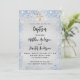 Um batismo moderno e elegante, comemorando dois garotos, gêmeos. Fundo com aspecto fino prateado decorado com brilho azul e uma cruz ouro. Personalize e adicione nomes e detalhes da cerimônia. Letras pretas coloridas.