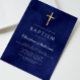 Batismo Menino Elegante, Convite Real Blue Watercolor. Itens correspondentes disponíveis.
