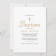 Este simples convite batismo apresenta uma cruz de cor dourada e batismo escrito em escrita elegante. Este convite minimalista é perfeito para um sacramento católico do batismo, do batismo cristão, ou para ocasiões religiosas cristãs.