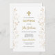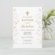 Convites Batismo minimalista de flores Douradas espanhol