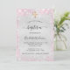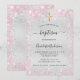 Convites Batismo moderna menina rosa-prateada