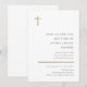 Convite de Batismo Moderno Mínimo Cruz de Ouro com tipografia simples. Clique no botão de editar para personalizar este design com seus detalhes.