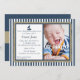 As faixas azuis marinhos e os barcos-vela decoram este convite para bebês náuticos, ou anúncio para batizar de bebês ou qualquer ocasião.