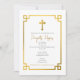 Uma bela design do batismo mostrando uma borda de chave grega de ouro e um ícone ortodoxo grego da Virgem Maria no verso da carta. Um design religioso ideal para o Natal Batismo de um bebê ou de uma menina. Papelaria e decoração correspondentes podem ser vistos nesta coleção de designs.
