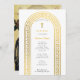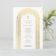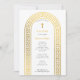 Um belo design do batismo com um arco em ouro de chave grega, Cross e um ícone ortodoxo grego da Virgem Maria no verso da carta. Um design religioso ideal para o Natal Batismo de uma menina ou de um menino. Os artigos de papelaria e decoração correspondentes podem ser vistos nesta coleção de designs.