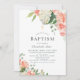 Este elegante convite para o batismo de uma garota apresenta um fundo branco com rosas cor de pêssego e hydrangea branca em aquarela. Personalize-o para as suas necessidades. Você pode encontrar produtos correspondentes na minha loja