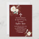 Convites Batismo Real Burgundy Dourado Flores Brancas
