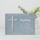 Um batismo simples, textural ou primeiro design de convite de comunhão sagrado de Stacey Meacham, com cor de fundo macia, com cruz de ouro em camadas e quadro clássico duplo.