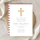 A Cruz Religiosa Personalizada, Rosa Pintada, Lança Um Convite Batismo Para Meninas.
