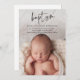 Este convite para o Batismo de Foto do Bebê do Script Moderno apresenta uma bela foto vertical sangrada de cheio e uma arte de batismo escrita à mão e um texto editável mínimo. Clique no botão editar para personalizar este design.