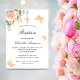 Um fundo branco decorado com verde de eucalipto, ouro rosa e rosa-rosa-rosa-pincel, folhas de ouro e borboletas. Personalize e o nome e os detalhes da cerimônia.