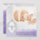 Elegante Baptisma, Roxo, Lace Branco Foto Jewel Cross Baby Girl, Convocação Baptism Para Cristo. Personalize com seus próprios detalhes e Foto.