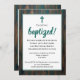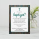 Russo, placa de madeira ADULT BAPTISM convite, mostrando que ESTOU SENDO BAPTIZADO e texto personalizável. A via colorida principal é azul lacrimejante. Há um texto marcador no verso, que é baseado em 2 Corinthians 5:17 - nova criação em Cristo, e pode ser substituído por detalhes adicionais de sua celebração.