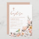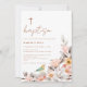 Celebre o batismo com este elegante e moderado convite ao batismo de flor selvagem minimalista neutro, com a aquarela boho Little wildflower, passarinho e ilustração simples.