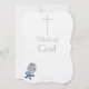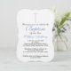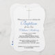 Batismo Elegante Cross Son Convites com simples cruz de prata pintada à mão com sotaques de ouro na frente e atrás do cartão. Fresco e com aspecto estaladiço. Batismo e Nome da Criança são escritos em bonito roteiro azul. Personalize com o Primeiro ou Primeiro Nome e Meio do Seu Bebê, Data do Batismo e detalhes. A parte de trás da carta é branca com o texto Criança de Deus em texto prateado, com uma imagem prateada de chocalho com estrela azul e a aparência de um elegante arco azul com amor escrito de chocalho em texto branco. Escolha seu estilo e tipo de papel. Trabalho de arte gráfico original e Design por © 2018 TamiraZDesines.
