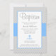 Convites Batismo transversal azul cinzento do baptismo do