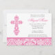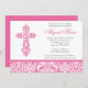 Um convite cor-de-rosa e branco clássico do batismo ou do baptismo. Caracterizando uma cor damasco cor-de-rosa e branca com uma cruz ornamentado do rolo. Elegante e doce -- personalize facilmente para seu evento.
