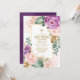 Este convite para batismo encantador apresenta flores roxas e cor-de-água rosa e folhas verdes tropicais.