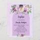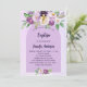 Um fundo violeta, lavanda, de cor aquosa. Decorados com flores violetas e púrpuras, de cor aquosa, e com uma cruz ouro. Personalize e o nome e os detalhes de recepção.
